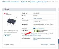 The LM358B and LM2904B amplifiers are available in micro-sized packaging, such as the SOT23-8, as well as industry-standard packages including SOIC, TSSOP, and VSSOP. When choosing a footprint for the LM358 we don't look for LM358 but for the package we want to use. In our case it is the DIP-8 which we have in the lab and it stands for dual inline package with 8 pins.